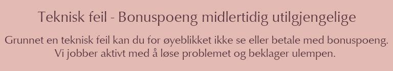 Husk å logge inn, da samler du alltid 10% bonus på din handlekurv. Din oppsparte bonus bruker du som betaling/delbetaling når du ønsker.