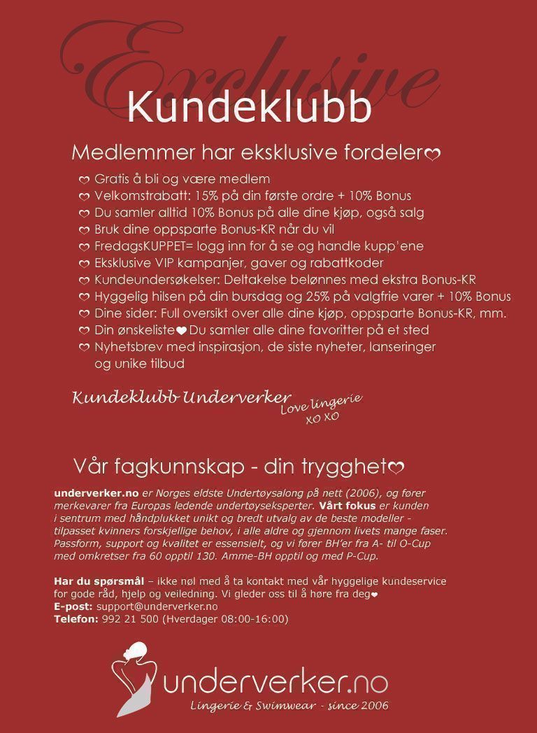 Kjære kunde, velkommen til vår Kundeklubb og lojalitetsprogram! Vi gir deg fordelene du ikke vil gå glipp av, og medlemskapet er selvsagt gratis, helt uten forpliktelser og kjøpskrav. I tillegg til 10% Bonus på absolutt alle kjøp får også våre klubbmedlemmer Nyhetsbrev og SMS med eksklusive kampanjer, de beste rabatter, nylanseringer, mm❤️