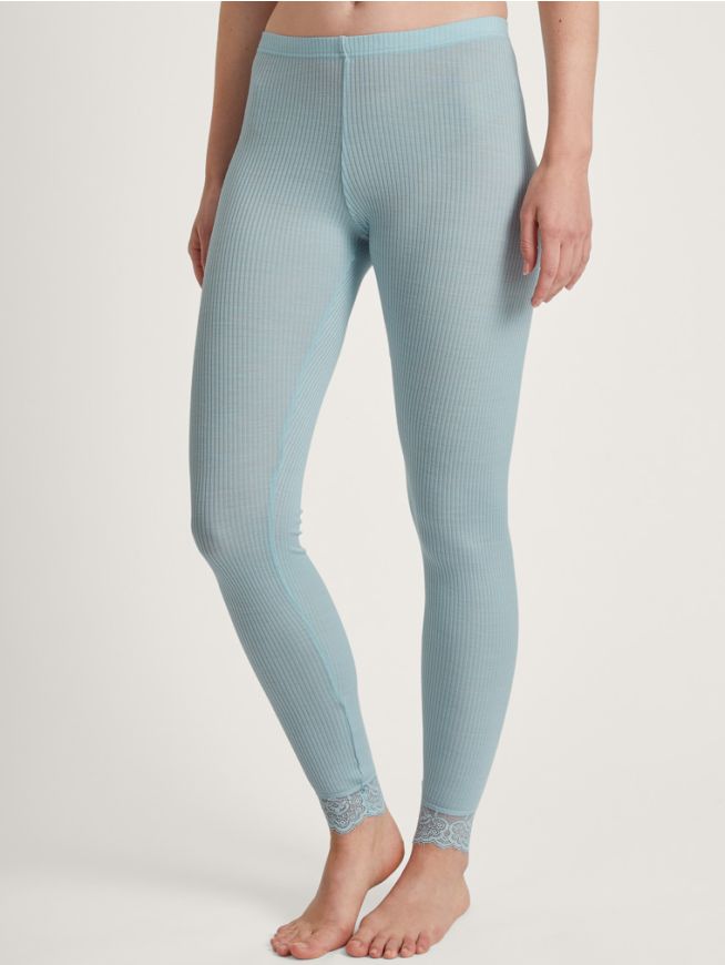 Leggings med ribbestrikk som avsluttes med delikate blonder nederst. Flat, elastisk linning. Produsert i høykvalitets blanding av merinoull og silke; isolerer og varmer når det er kaldt, og kjøler på varme dager. Ekstremt myk og skånsom mot selv den mest følsomme hud.