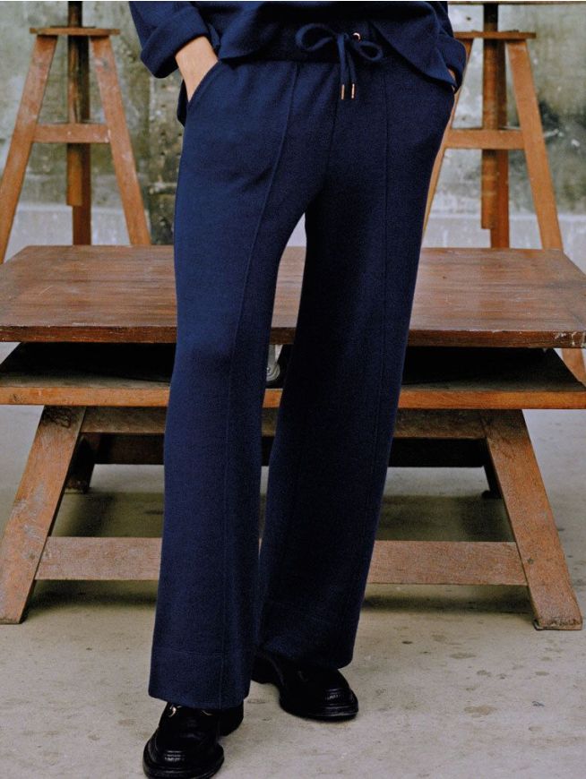 Myk og komfortabel bukse med rett snitt. Snøring i livet og lommer i hver side.