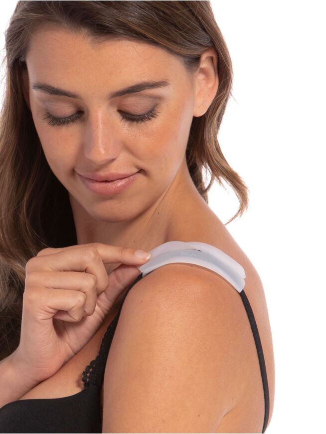Myk, langtidsholdbar anti-skli silikonstropp som forhindrer at BH-stropper sklir eller presser ned i skulderen.