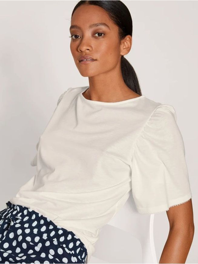 Nydelig skjorte i myk og glatt kvalitet. Korte ermer, avrundet hals og fine ermer.