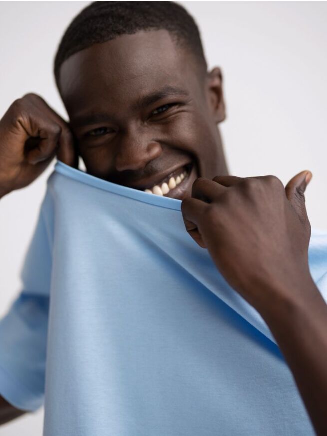 Kortermet skjorte med klassisk snitt og avrundet hals. Perfekt å matche med buksene fra Remix-serien.