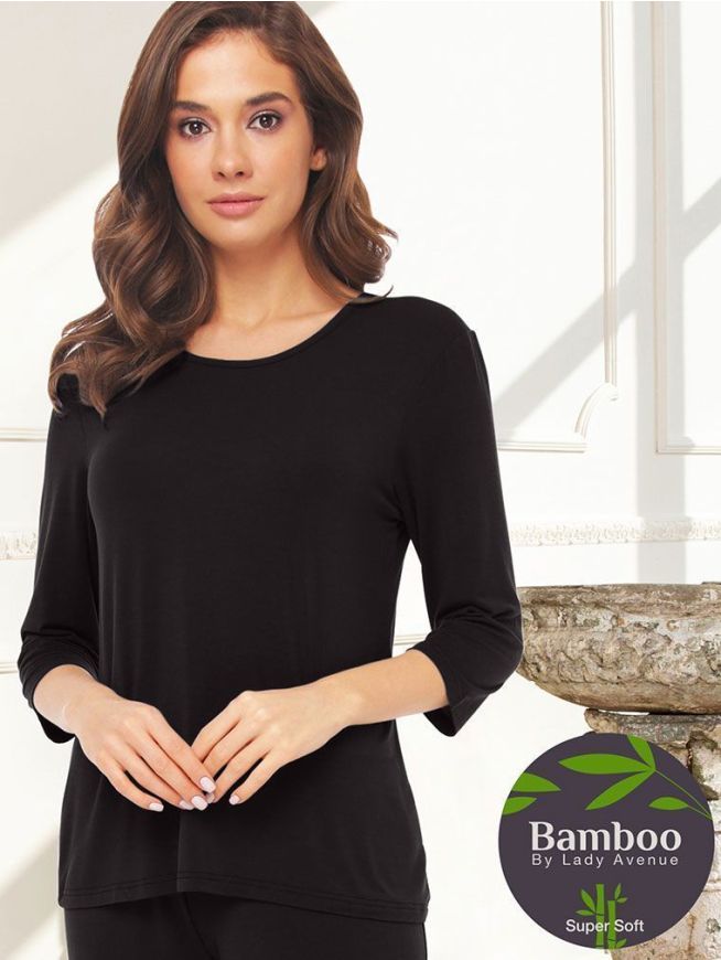 Lady Avenue Bamboo 3/4 Shirt, Str S-XXL, Black