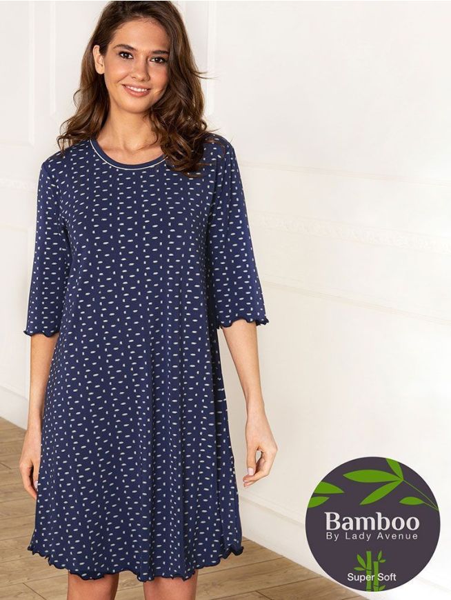 Lady Avenue Soft Bamboo Nightdress, Str S-XXL, Indigo/Camel