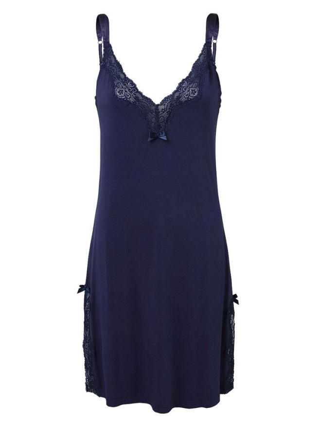 Pearl Modal Lace Chemise, Str S-XL, Navy