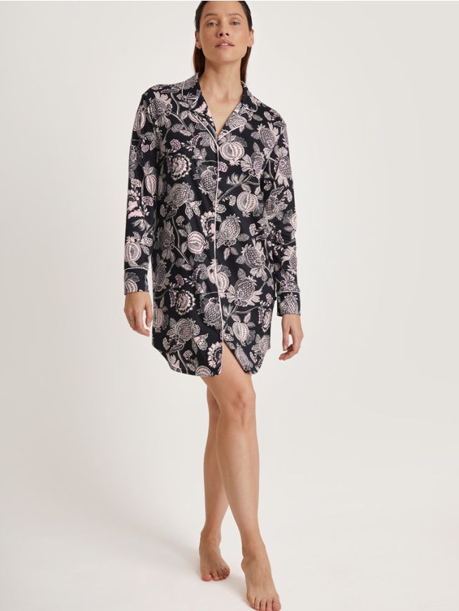 Elegant nattkjole med delikat print. Nattkjolen har løs passform og rett snitt med knepping i front.