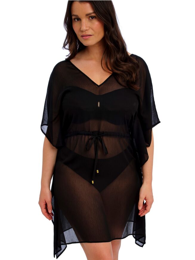 Lett, luftig og svalende kaftan med V-utrigning og snøring i midjen. Perfekt over din bikini.