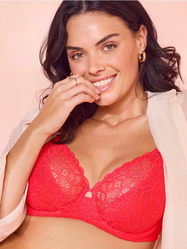 Fin BH med bøyler og heldekkende blonder. Nedre del av cup er lett foret med ikke-stretchy powernet (finmasket netting), som gir det beste løft, støtte og support. Øvre del av cup har stretchy blonder som gjør BH'en enkel å tilpasse.
