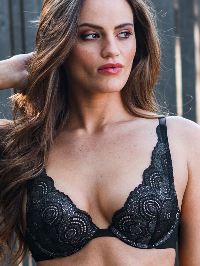 Fin push-up BH med bøyler og dyp skjæring (plunge) for en ekstra lekker utringning. Nedre del av cup'ene har padding/vattering som løfter bysten og gir en avrundet fasong. Ytterstoffet på de paddede cup'ene er i behagelig mikrofiber som gjør de myk og komfortabel mot huden.